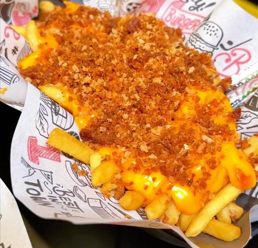 – Fritas com cheddar e bacon