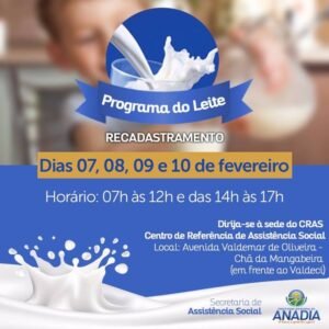 Prefeitura de Anadia inicia recadastramento de beneficiários do Programa do Leite 6 de fevereiro de 2017