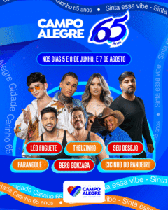 Prefeitura de Campo Alegre divulga a programação de shows da festa de 65 anos do município 27 de maio de 2025