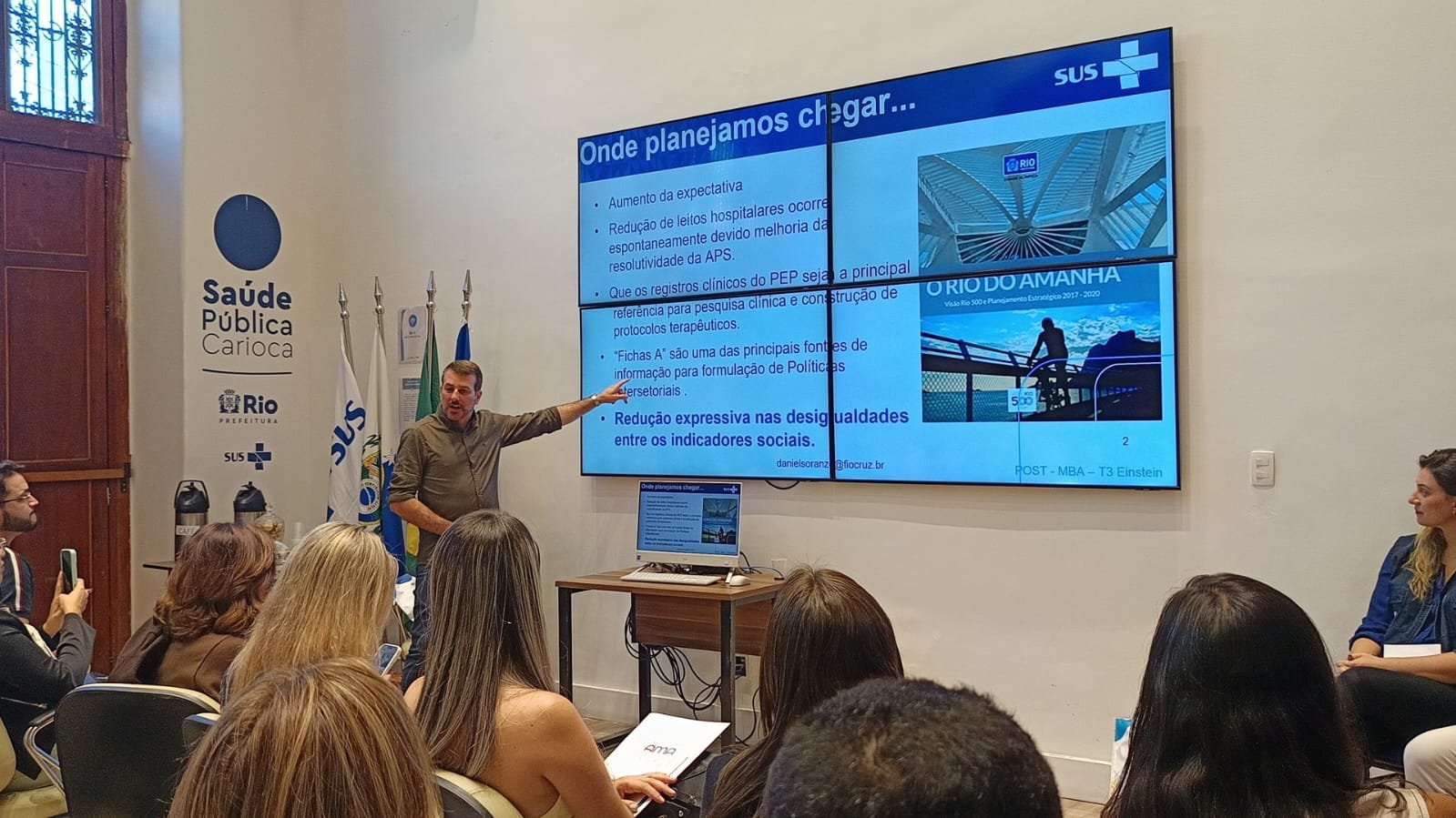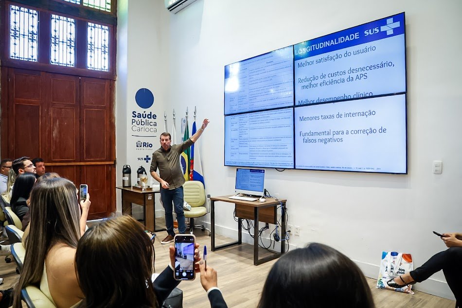 Durante palestra, Soranz destacou um dos pilares fundamentais da atenção primária: o acesso de primeiro contato. Segundo ele, a qualidade e organização do sistema de saúde começam nesse ponto inicial. “A melhor forma de avaliar isso é perguntar ao cidadão quem ele procura quando está doente. Se ele conhece o nome do médico, da enfermeira ou do agente de saúde, significa que o sistema está organizado. Caso contrário, quando a resposta é uma UPA ou emergência, há falhas na estrutura”, explicou. Ele ressaltou ainda que esse fator é determinante para diferenciar sistemas de saúde organizados daqueles com baixo nível de eficiência — realidade que vem sendo transformada no Rio de Janeiro, mesmo diante da complexidade de uma metrópole.