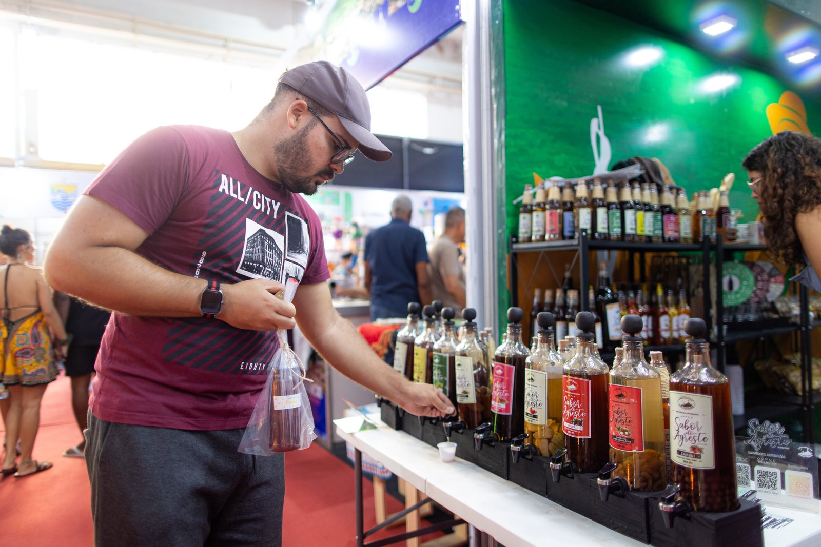 A produção, comercialização e venda de cachaça está intrinsecamente ligada à região Nordeste, principalmente nos municípios localizados no interior dos estados. E, na 13ª Edição da Feira dos Municípios, os visitantes tiveram a experiência de vivenciar nos estandes a “Rota da Cachaça”. Na maioria dos espaços, havia sempre uma ou várias garrafas de “pinga” e da “marvada”, como carinhosamente costumamos chamar.